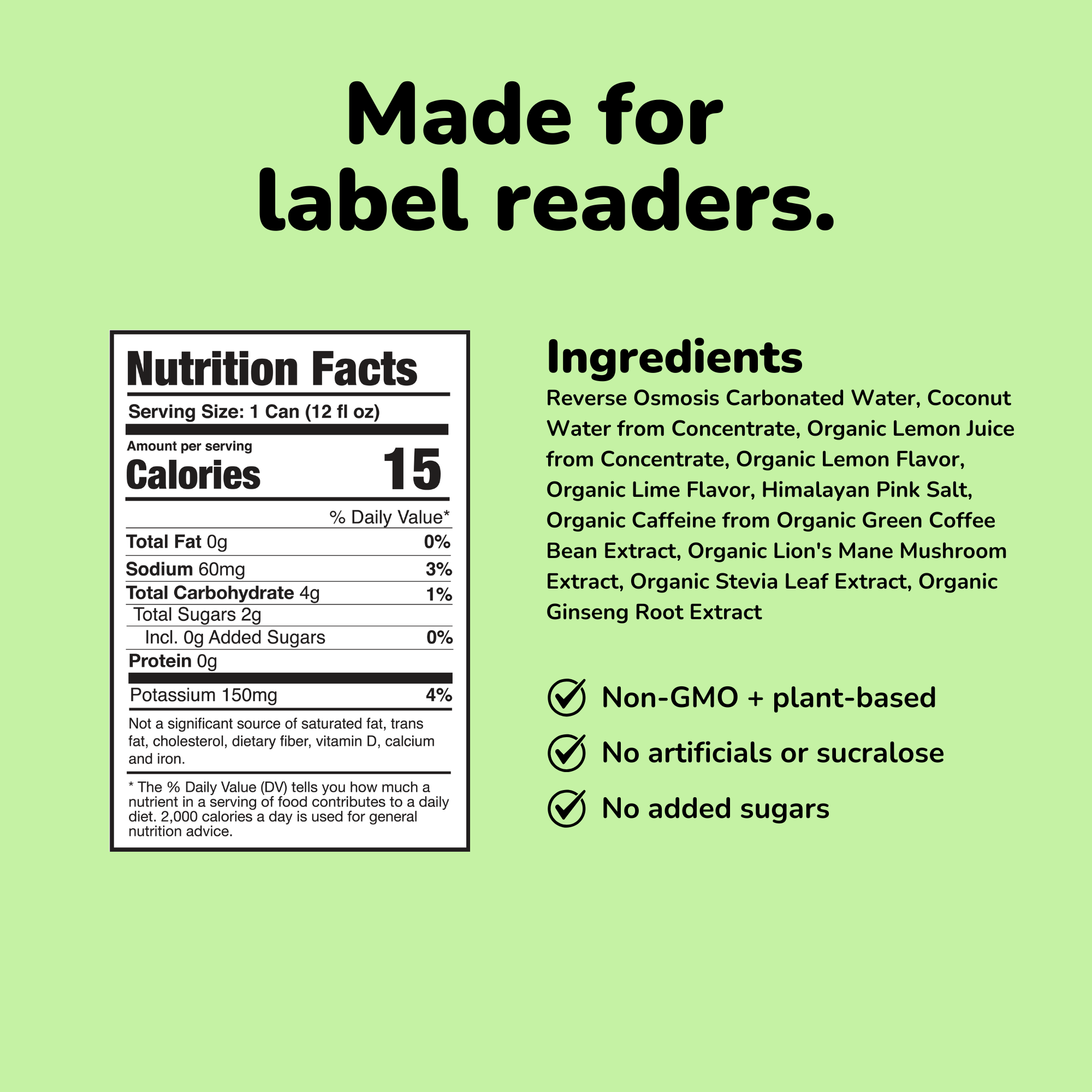 Bright, zesty organic lemon and lime flavor for a crisp, refreshing boost.