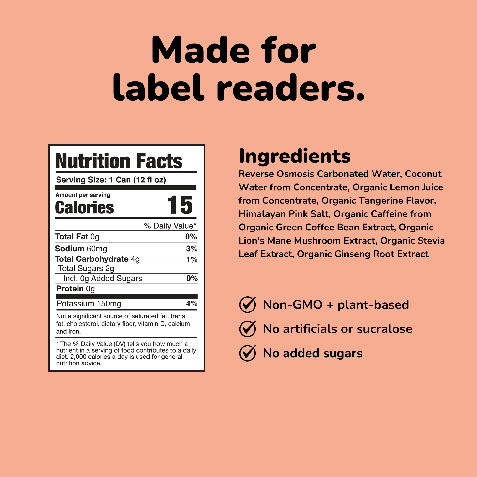 Clean, sustained energy without the crash. With 120 mg of naturally sourced caffeine, it gives you the mental lift you want, minus the jitters.